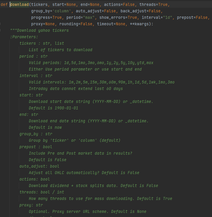 혹시라도 download 펑션 파라미터에 대해서 알고자 한다면 파이참에서 CTRL+ Fundtion 을 클릭 하면 된다. ( 여기서는 CTRL + download)